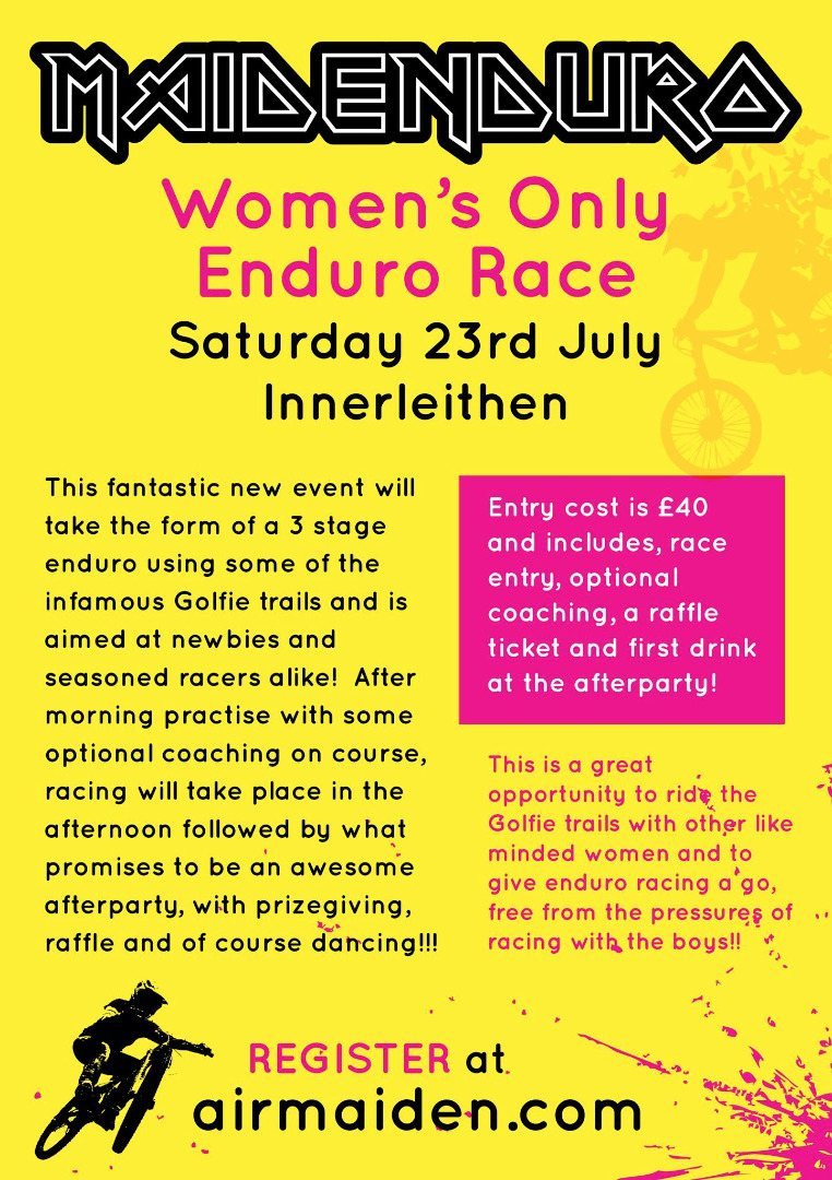 This fantastic all women’s enduro will take place on Saturday 23rd July at Innerleithen. This will be a 3 stage enduro using some of the infamous Golfie trails and is aimed at newbies and seasoned racers alike! After morning practise, racing will take place in the afternoon followed by what promises to be an awesome afterparty, with prizegiving, raffle and of course dancing!!!