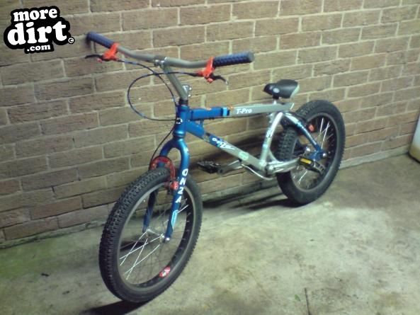 Onza T-Pro 2000, land rover cushioned seat, kona jack shit pedals, limited addition red HS33 mk1 with red brake booster and limited addition blue and black brake hoses, cane creek headset bearings, all other parts are onza stock.