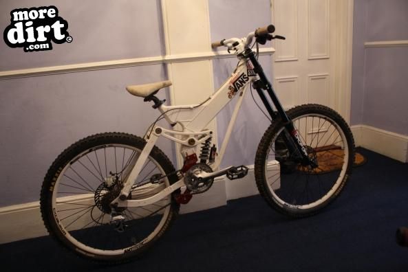 nice rig mate and heres my rating, overall a sound bike nice frame (not too sure on colour though) and good reliable parts, im not too keen on forks and they are ok for light DH/FR but have a tendancy to snap under heavier tracks/hits so drop a point for that. The rear shock looks like a manitu which is great as they are high quality and light. Chain quide is nice suits the rig as do the wheels but (i may be wrong in which case sorry) but the brakes look like mechs not hydros which isnt cool for DH mate. But its a good bike and even better for what you paid.