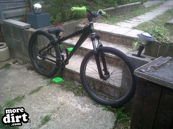 looks nice, using V brakes on back? if yes change it, also what forks? get a spec list up, green on black looks sweet mate :)