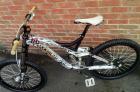* Frame is obviously Trek Session 88 Size Large (the best and most sought after size) just read the reviews in dirt or anywhere on how good these frames are. Trek really nailed the design and hence the new (funk off expensive) ones apart from being in carbon not a great deal has changed. I have had a full custom graphics kit made for the bike, its a take off of the one industries Hart & Huntington CRF450 style ones. The graphics made from full moto grade vinyl so pretty much like heli taping the bike but a shit load cooler!! The graphics can be removed and underneath you'll have shiny non scratched frame. The bike has been properly looked after so NO dents what so ever! i have even added the trek bash guard to the down tube to protect it.