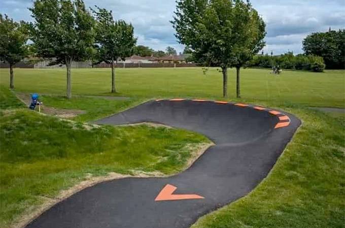A pump track is a small but intense circuit of rolling bumps, table-top jumps, and bermed corners designed to be ridden continuously without pedalling by using weight shifts (pumping) and gravity. Pump tracks are great for developing skills and improving your technique whether you’re a beginner or an expert.
